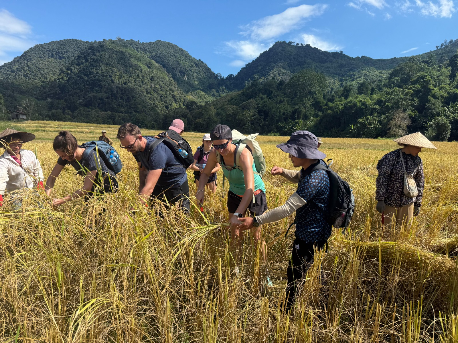 Start your adventure at 8:30 AM with a Tuk Tuk ride from our office or pick you up from your hotel to Ban ViengKham. Begin an easy morning trek about 2 hours through rice paddies (seasonal) and peaceful villages. Stop at Ban Naluang for a simple Lao lunch before preparing for the tough 4-5 hours trek in the afternoon through steep jungle trails, bamboo forests, and mountain ridges. You will see the big tree and walk across the stream.