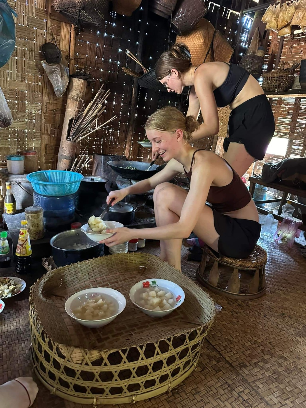 At 8:30 AM. Meet you at the office. Then the Tuk Tuk will come to pick you up. Begin an easy morning trek through rice paddies (seasonal) and peaceful villages. Stop at Ban Naluang for a simple Lao lunch before preparing for the tough 4-5 hours trek in the afternoon through steep jungle trails, bamboo forests, and mountain ridges until reach Ban Houy Hoiy. In the evening, join a cooking class and make a bamboo bottle bracket with the locals and enjoy a traditional Lao dinner. We are spend the night at a homestay with authentic village life.